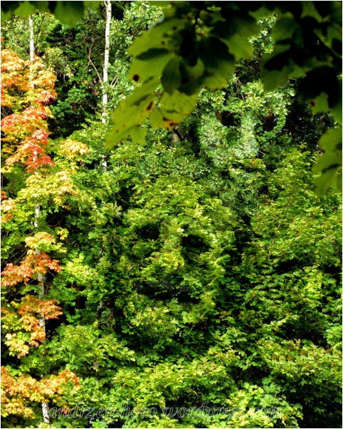 Cóż przyroda płata różne figle… na niebie w leniwie płynących obłokach można zobaczyć różne stwory, w liściastej ścianie lasu podobnie… dajmy tylko poszaleć naszej wyobraźni choć nie ukrywam, że program graficzny jest pomocny w wyeksponowaniu tego, co pokazała nam natura, a oczami wyobraźni zobaczyliśmy… ;)